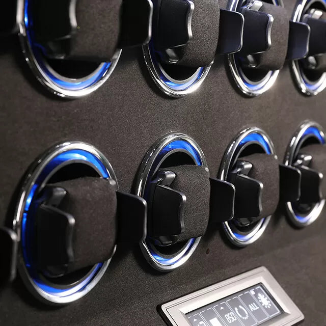 Écran LCD & LED : Éclairage LED SMD à intensité variable, avec un anneau RGB autour de chaque emplacement pour une mise en valeur spectaculaire de vos montres