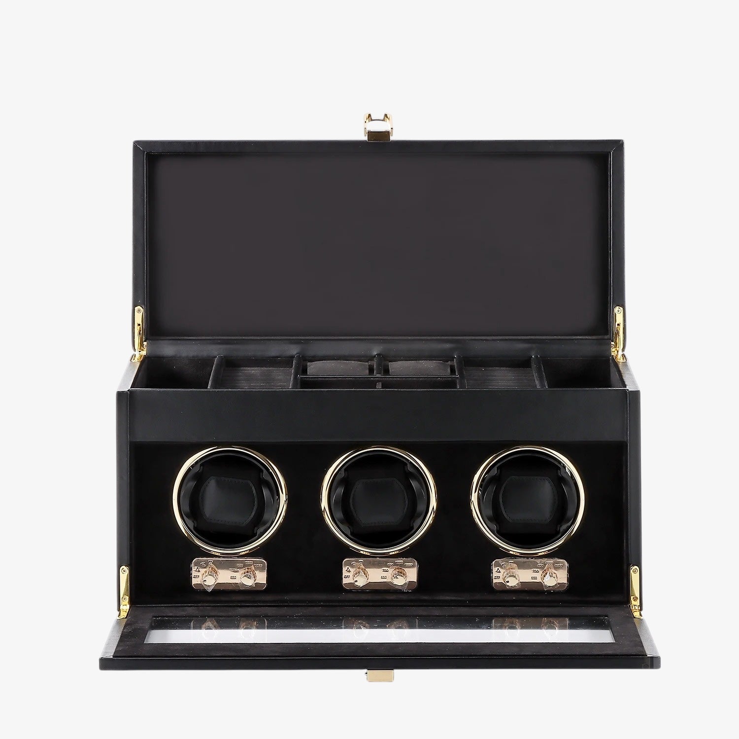 Capacité : 3 montres en remontoir + 5 espaces de rangement sur le dessus.